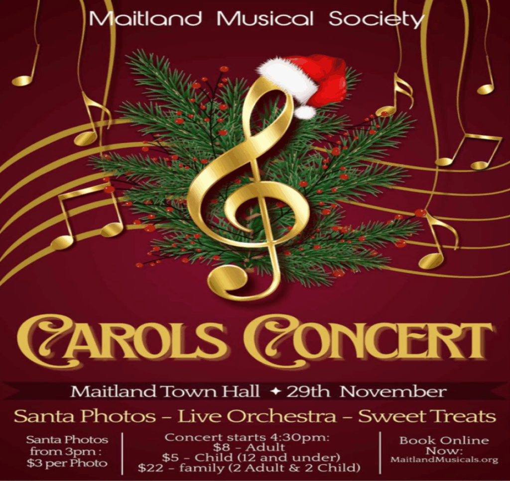 Maitland Musical Society presents, Carols at Maitland Town Hall.Â
